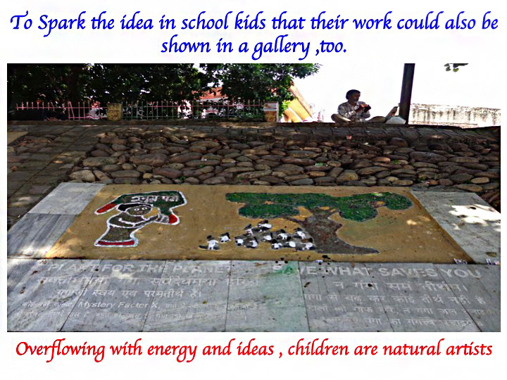 Young school children are delighted to see tourists appreciating and admiring their artwork.